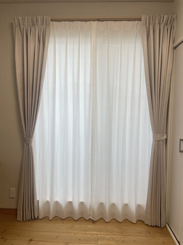 寝室には、遮光のドレープをお選びいただきましたので、