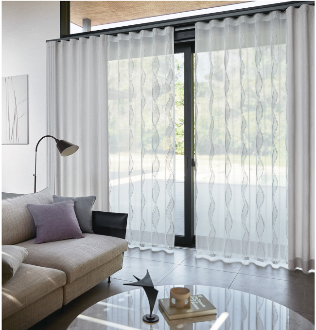 お気に入りのレースを室内側にかける「フロントレーススタイル」なら、日中だけでなく夜もその美しさを楽しめます。