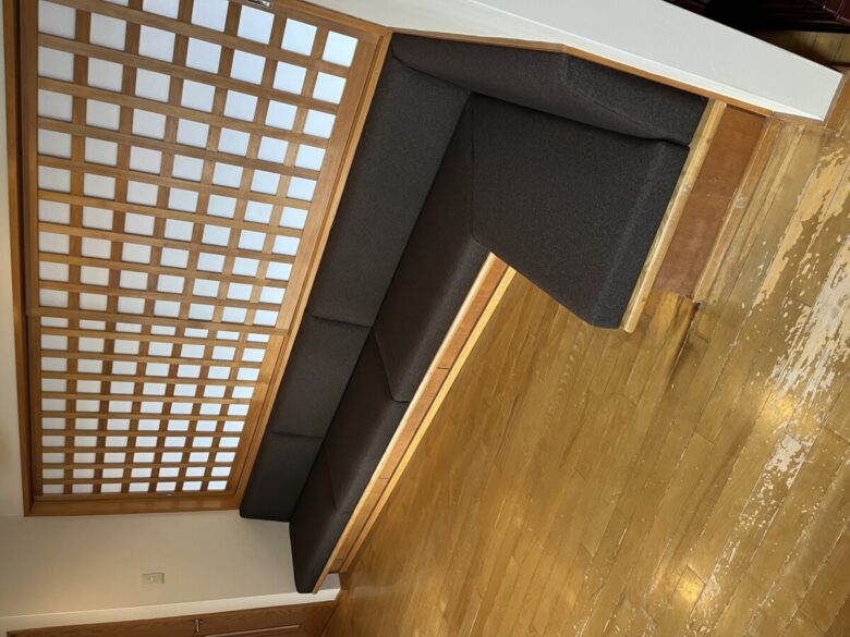 張地交換時にウレタンの交換や補充メンテナンスも行い、見た目も座り心地も新品のようになりました。