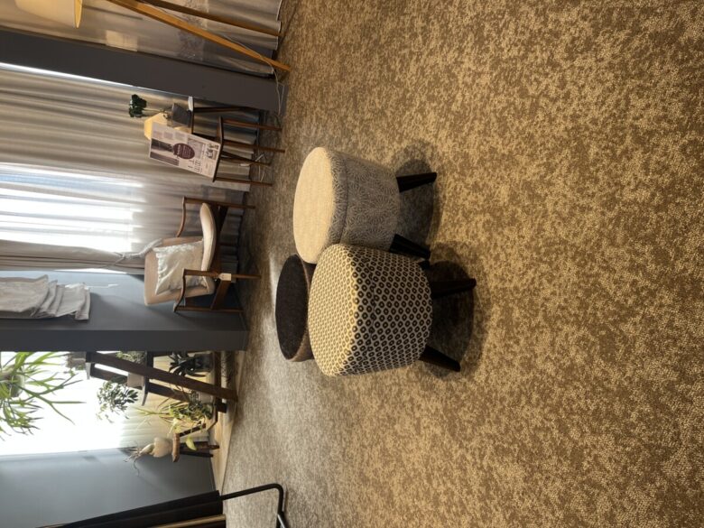 ちなみに、FLOTに置いてあるこのスツールも張地を交換したものです。