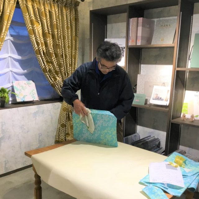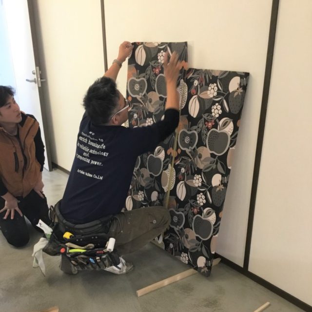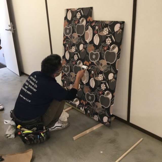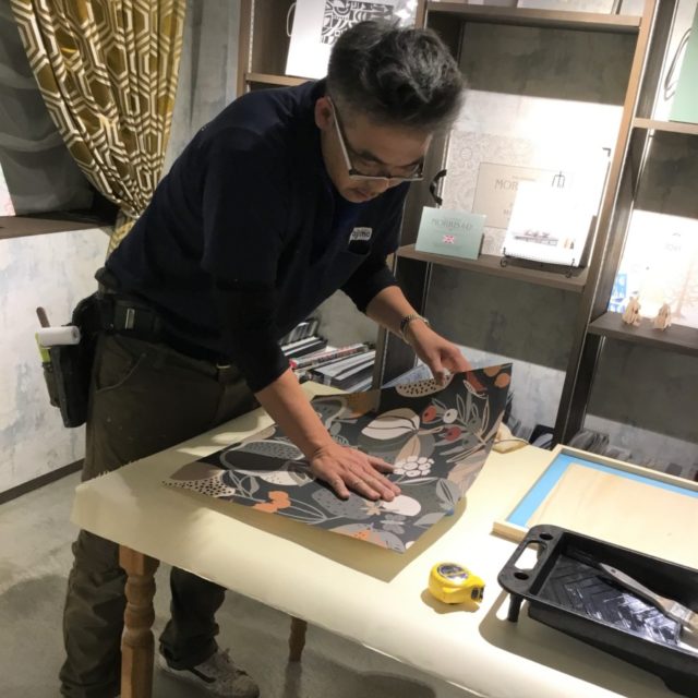 FLOTは内装施工会社が運営しているため、ご注文をいただくと普段クロスを貼っている職人が一枚一枚丁寧にパネルにクロスを貼っていきます。